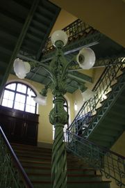 Die am den Leipziger Zoo gelegene Kongresshalle wurde im September 1900 eingeweiht. Der festliche Glanz der Einrichtung spiegelte sich auch in den Kandelabern und dem Treppengeländer wieder.