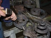 Im Anschluß wurden vor allem für Ornamente, Blüten und Blätter Probestücke aus Walzblei gefertigt. Nach der jeweiligen Bestätigung oder Änderungswünschen wurden die Arbeitsschritte durch Protokoll und Dokumentation bestätigt. Im Anschluß erfolgte die Umsetzung in geschmiedetes Eisen. Auch hier gab es erneut zu jedem Teil eine Abnahme. Seitens des Auftraggebers war man natürlich sehr vorsichtig bei der Absegnung der Teile, da es ja wie gesagt keine konkrete historische Vorlage gab. Und es wurde beratend noch andere Fachleute hinzu gezogen, wie zum Beispiel der Chefrestaurator des Dresdner Schlosses oder Mitarbeiter der Denkmalbehörde.